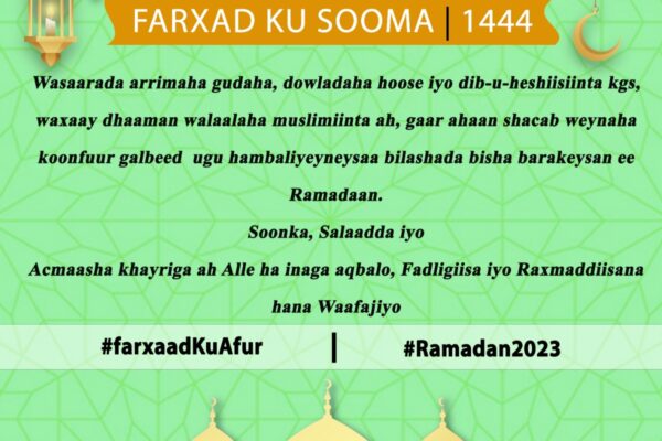 Following the necessity needed to make changes in the current Ceel Berde Administration, the Minister of Interior, Local Government and Reconciliation, Southwest State of Somalia, Mr. Abdullahi Haji Hassan has dismissed the following officials of their duties and responsibilities, effective from 16th May 2023: Haadi Siraad cumar (Ceel Berdde Mayor) Cumar Sh. Cabdiraxmaan Boorow (Deputy…